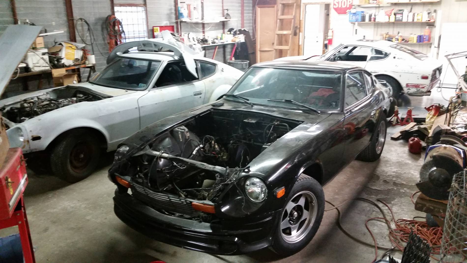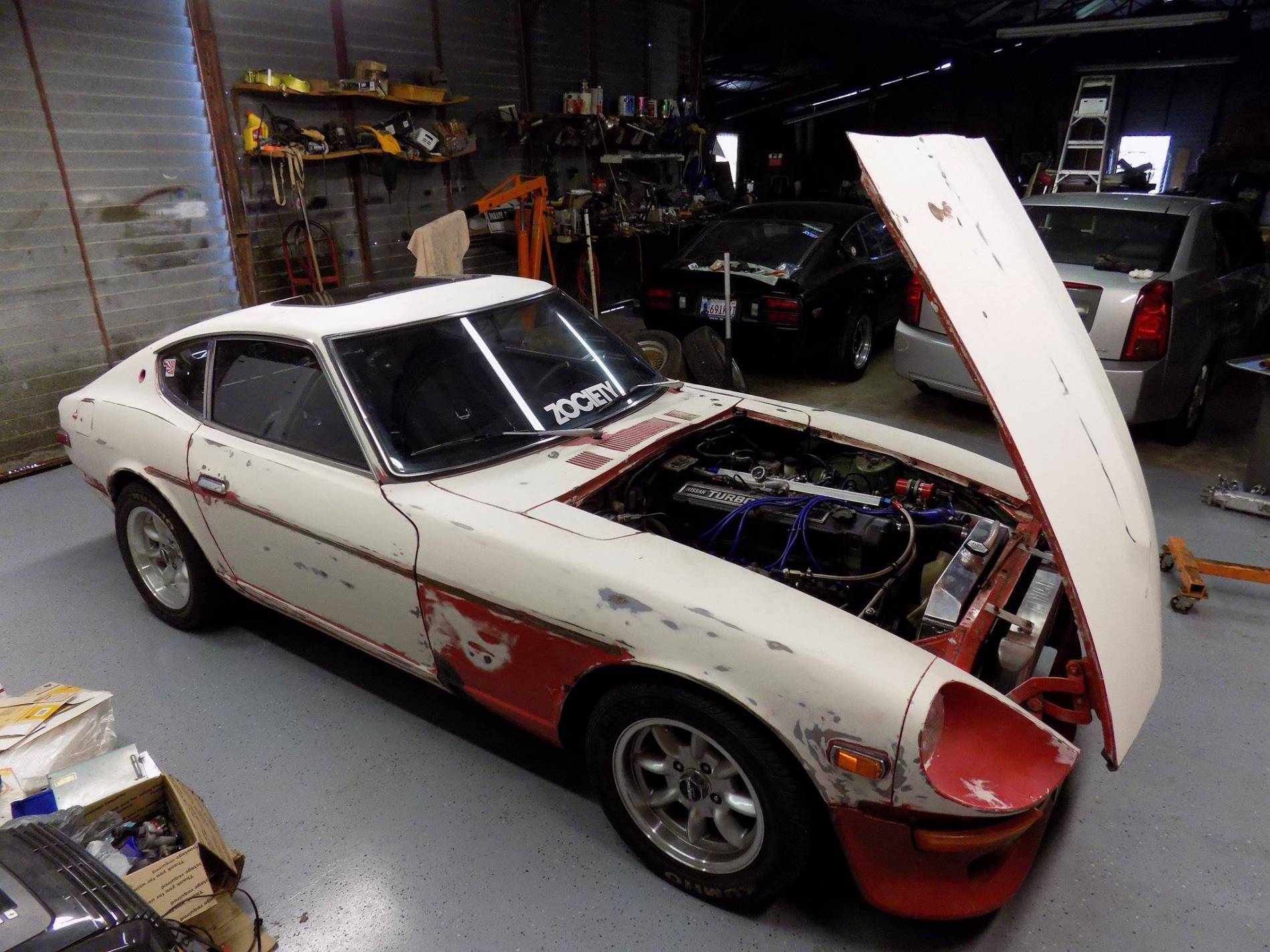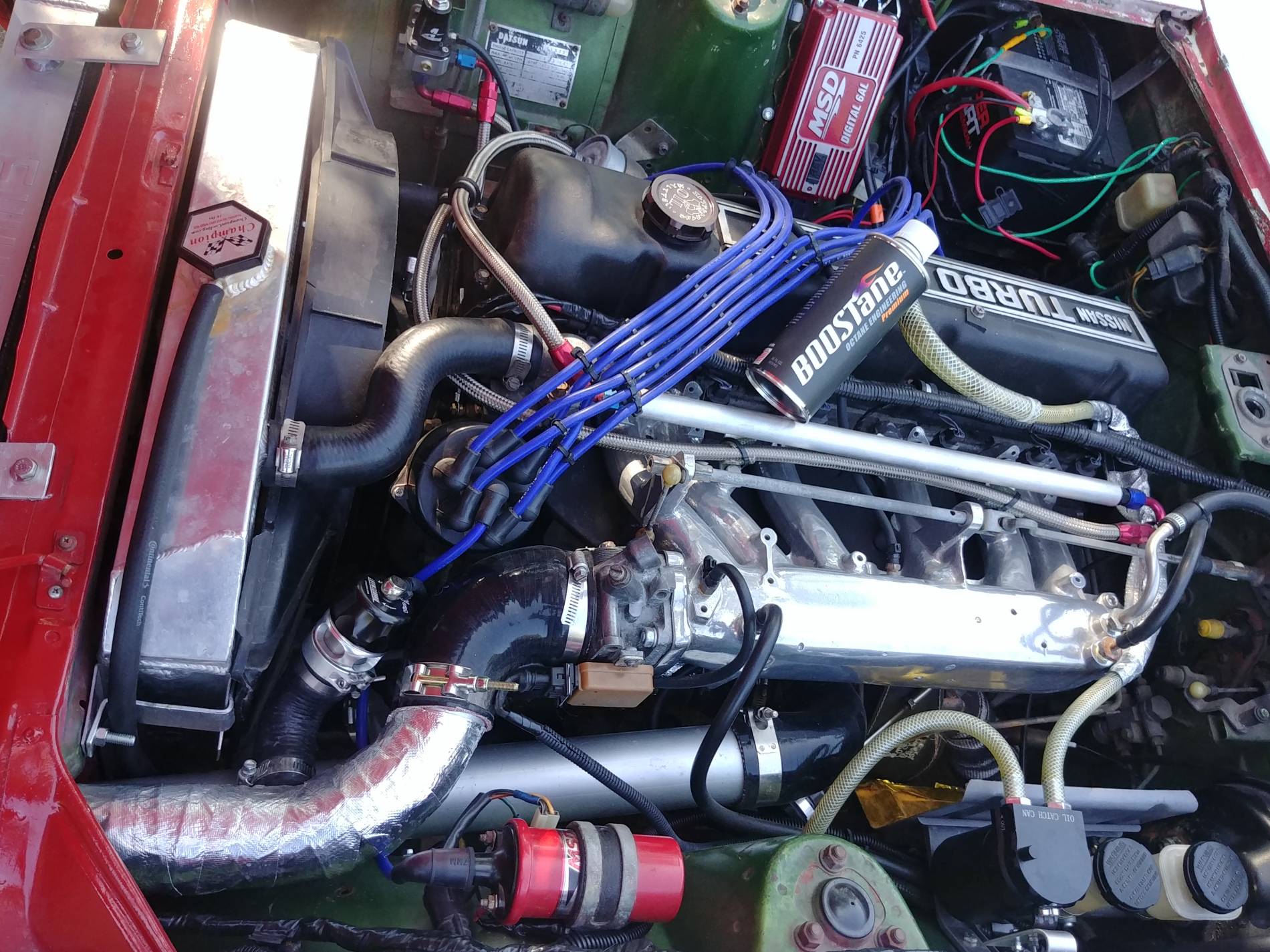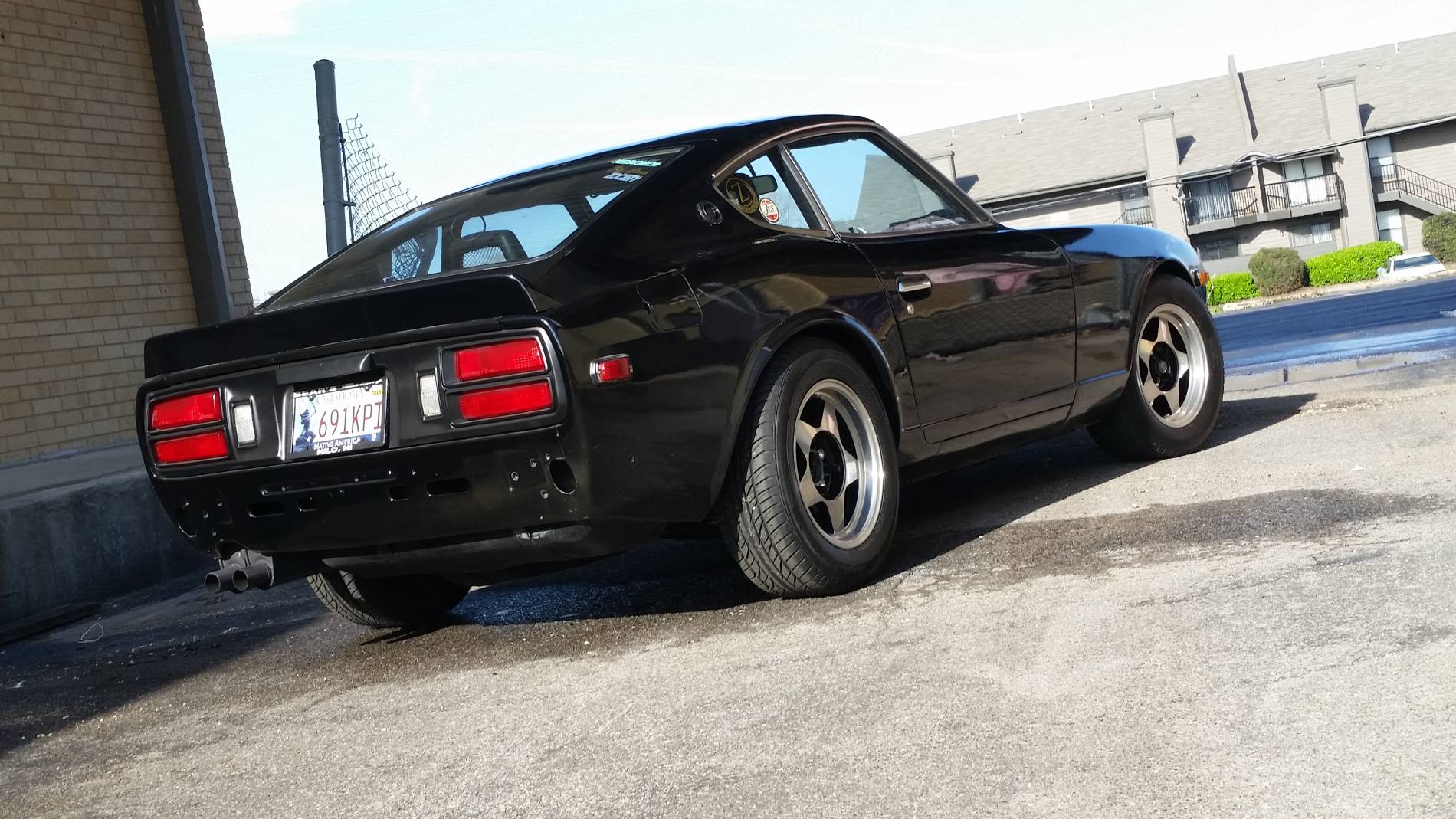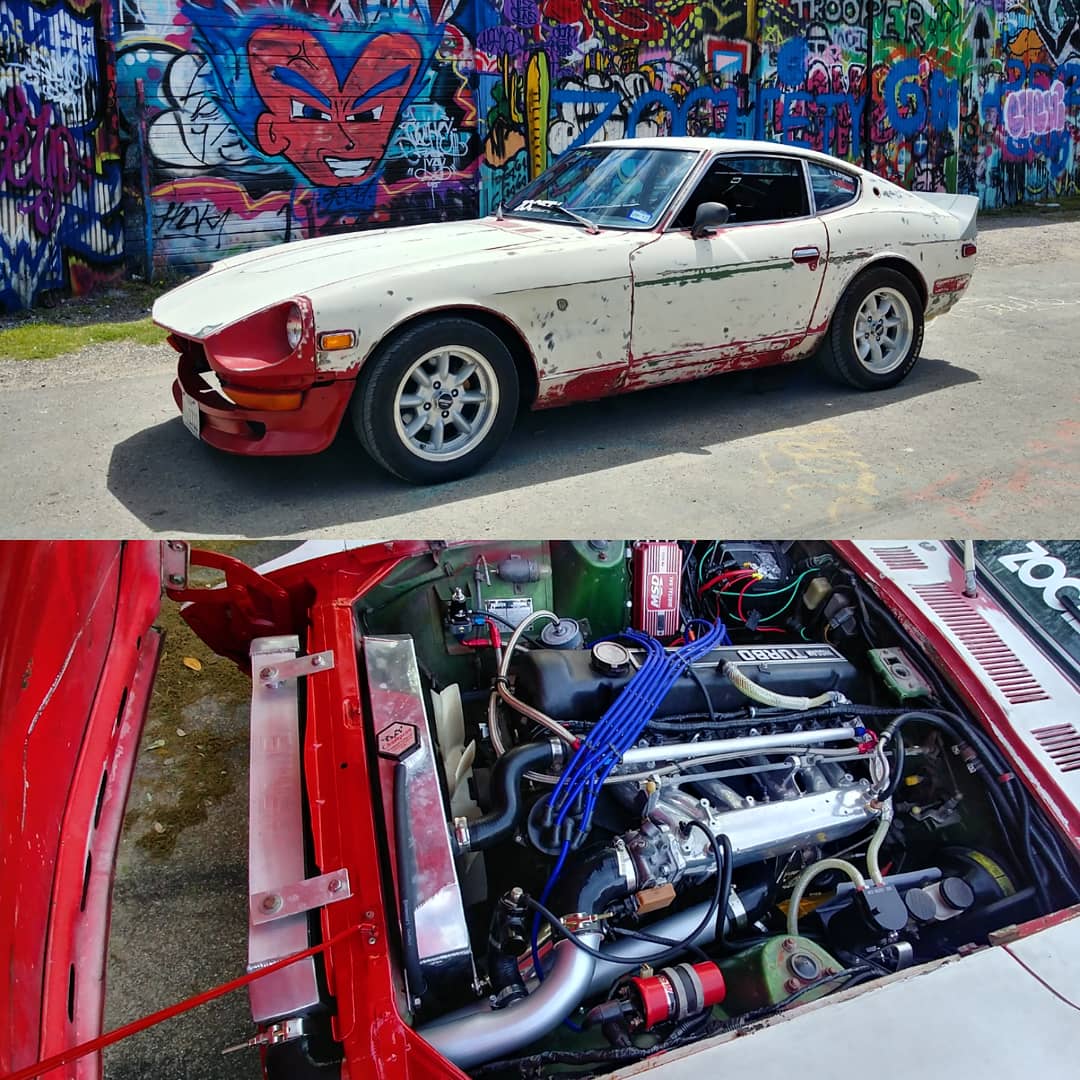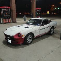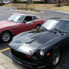 Modifications: 260Z. Interior: 350z seats Skildred door panles T3 C-Piller brace Msa rear strut brace Nrg seat belts Nrg steering wheel Boss hub Fuel pressure gauge Oil pressure gauge Suspention: KYB 5 way shocks KYB springs Poly bushings Swaybars Toyota S12+W four piston front brakes Drilled and sloted rotors 15/16" master cylinder Panasport 15x7 wheels Kuhmo 225-50-15 tires Engine: L28et- stock oil pan to cam Ported 76 intake ceramic coated Weber throttle body 440cc injectors Planet fuel rail Aeromotive FPR EMUSA same side FMIC Turbosmart BOV Turbosmart internal wastegate AGP T3T4 H-Trim turbo Thermal Zero turbo banket Inovate SG-1 boost control MSD box 2.5. Aero turbine exhaust Nistune Z31 ecu swap tune by Simtecmotorsports 17 PSI of boost. . .. ... .... ..... 280Z. Exterior: Full repaint to Black Unknown front Valance Unknown spoiler Bumper delete Eagle Alloy 028 15x7 wheels only 14 lbs Falken Ziex ZE 215/60/15 MT ET Street R, 225/50-15 party tires Engine: Re freshed SBC 350 Nitrous outlet 50-200 shot FITECH EFI 600 power-adder FITECH command center 2 Eddlebrock performer air gap intake Brodix 205/160 valve heads, with 64cc chambers, 215cc runners 1.5 roller rockers Comp cams XE274H-10 Duration @ 0.050": 230° / 236° Max Lift w/ 1.5RR: .487" / .490" Summit racing 4 valve relife pistons Sanderson 1 5/8" shorty headers 2.5" exhaust in to Borla mufflers MSD ignition system Cooling: Champion 3 row aluminum radiator Ford Taurus fan GM high flow water pump Transmission: Refreshed TH350 B&M shift kit B&M 2700 stall converter Suspension: Tokico HP shocks blues all four corners MSA lowering springs 240Z rear top hats Energy suspension full poly bushing kit stock sway bars Custom rear strut tower brace 5/8th bolt swap for spindle pins Brakes: Front- Toyota S12+W calipers Drilled and slotted vented rotors Stainless flex lines Hawk pads Rear- Resurfaced drums New wheel cylinders Stainless flex lines Porterfield rear shoes TFWorks extended wheel studs Muteki lug nuts Driveline: Stock R200- 3.54 gears Custom R/T-Z diff mount GM ES trans bushing AZC solid diff mount Shortened Chevy drive shaft Johns cars Chevy to Datsun adapter flange for diff Interior: Recaro seats form 82 Mustang GT G-Force 5point latch style harness Black carpet kit